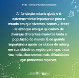 No sexto dia da SMI, realizamos um post informativo para que mais pessoas possam descobrir um pouco mais sobre o Rotary e as áreas que atuamos. É de extrema importância que saibamos mais sobre e alcancemos mais pessoas que descubram como funciona o mundo Rotario.