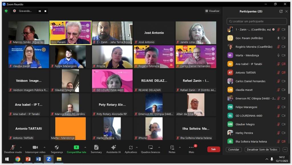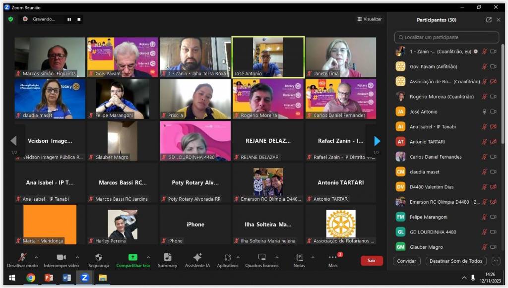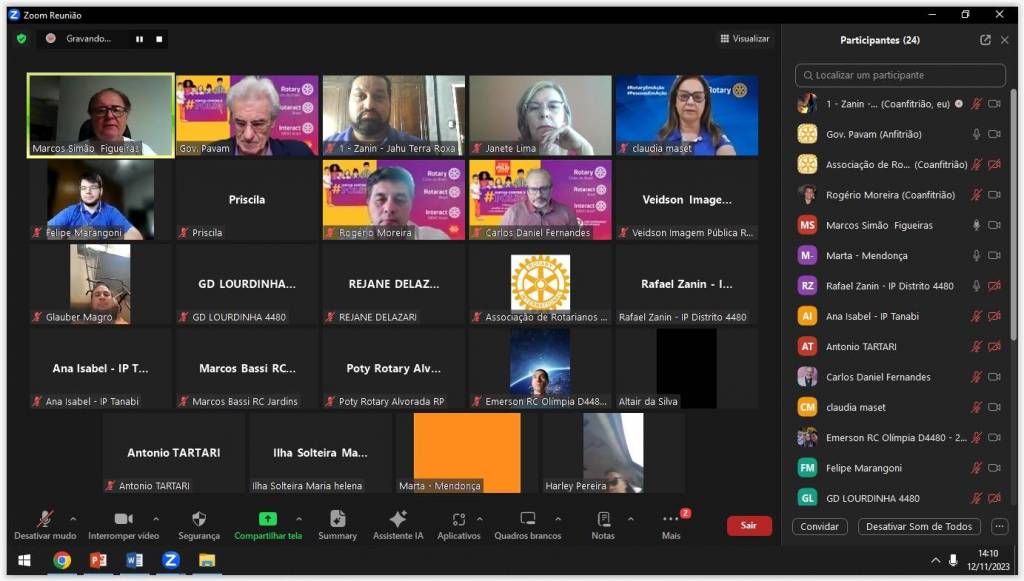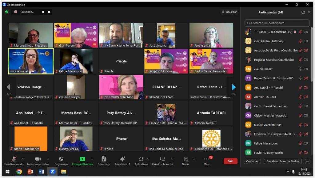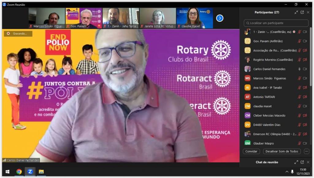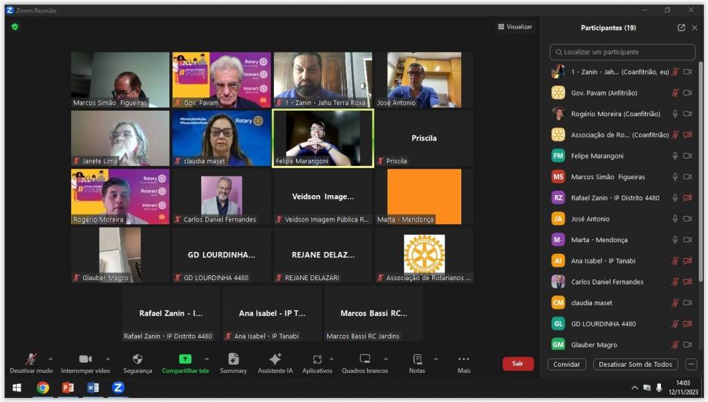 Na tarde do dia 12 de novembro foi realizado o Seminário Distrital Virtual de Imagem Pública do Distrito 4480, no evento em que tivemos Marcos Simões Figueiras como Protocolo, o Pres. da Imagem Pública no Distrito 4480 - Rafael Zanin pôde explanar e apresentar seus colaboradores "Praguinhas" e "Jujubinhas" - nome dado aos grupos dedicados à audiodescrição e tradução organização dos Informativos Rotários.