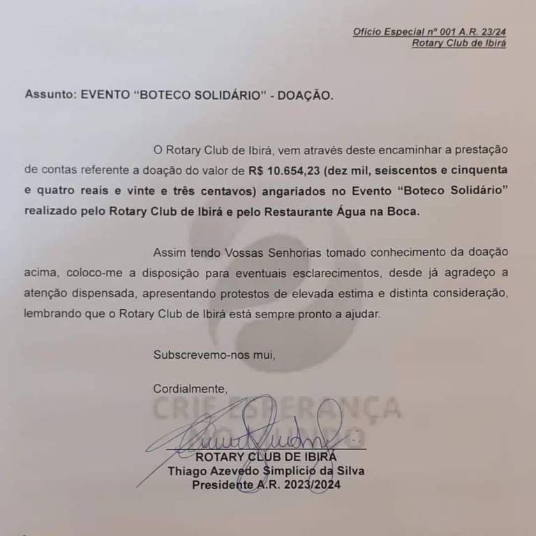 Texto do Rotary Club de Ibirá: