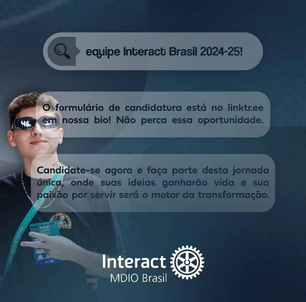Não perca a oportunidade de criar e vivenciar histórias incríveis dentro do Interact! Sabemos que existem inúmeros Interactianos capacitados para deixarem a sua marca no Interact Brasileiro, esperamos a sua resposta!