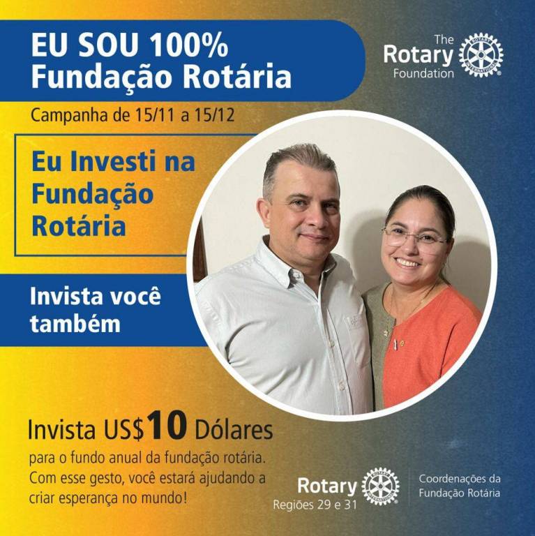 O Rotary Club de Mirassol - 8 de Setembro é 100% Fundação Rotária.
