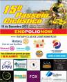 Um card bem colorido com a imagem de um ciclista profissional em sua bicicleta do lado direito acima com 2 informações destacadas: Percurso 1 - 35km e percurso 2 - 6 km. Do lado esquerdo ainda acima em letras amarelas com bordas vermelhas: 15º Passeio Ciclístico. Abaixo em letras pretas menores 10 de Dezembro de 2023. Percurso 1 saída às 6:00 h da Praça da Matriz e percurso 2 saída às 9:00 h da Praça da Matriz. Logo abaixo de fora a fora do card uma faixa vermelha larga com a logo amarela com branco da ENDPOLIONOW. Faixa amarela mais fina de fora a fora também. Abaixo em letras menores, realização: Rotary Club de José Bonifácio. Na sequência abaixo as logos de: Rotary Club de José Bonifácio, da Casa da Amizade, do Rotaract de José Bonifácio, do Interact de José Bonifácio, do Rotary Kids, o lema da gestão atual e as seguintes informações do lado esquerdo: Troca de alimentos não perecíveis por cupom: 1 kilo de alimento. Os alimentos arrecadados serão doados para entidades sociais. Do lado direito logo abaixo da logo do lema da gestão em um retângulo azul claro os dizeres: sorteio de vários brindes.