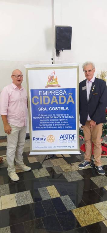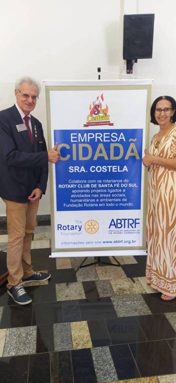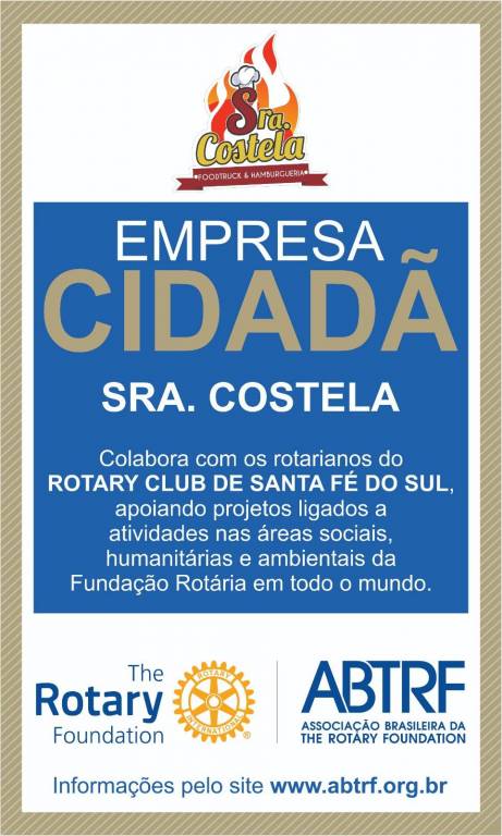 É com grande alegria que o Rotary Club de Santa Fé do Sul apresentou hoje, na visita oficial do Gov, a Sra. Costela, empresa cidadã do Rotary Club de Santa Fé do Sul.