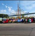 Audiodescrição: na foto, vários jovens posam pra foto, sentados em um monumento que tem um coração e está escrito Santa Fé do Sul, atrás, algumas arvores e pessoas no fundo.