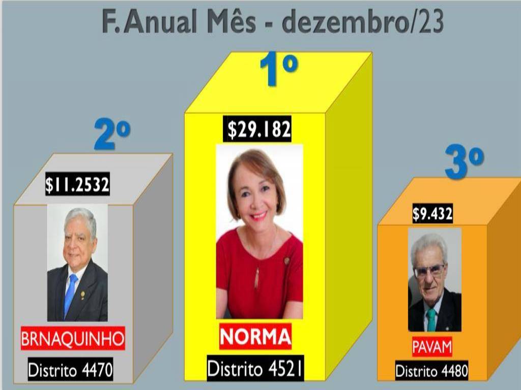 Na cor ouro temos o 1º lugar Distrito 4521 US$ 29.182