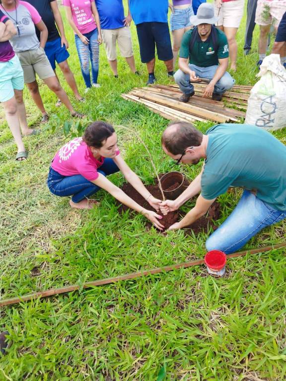 Foi realizado o plantio de 54 mudas de árvores, ao lado da mata da pedreira, sendo uma das especies plantadas temos a Peroba-rosa, árvore símbolo de nossa cidade.