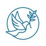 Um card branco trás no seu centro um desenho de um círculo em linha fina azul. No centro do círculo também em azul temos o perfil de uma pombinha com um galho de planta no bico.