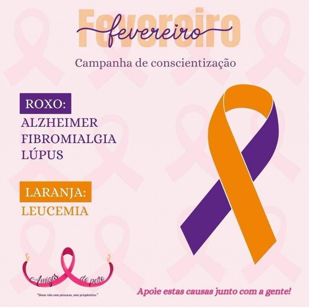 Fevereiro Roxo 💜 destaca a conscientização de condições como lúpus, Alzheimer e fibromialgia, buscando promover compreensão e apoio. Além disso, o laranja 🧡 simboliza a luta contra a leucemia, reforçando a importância de sensibilizar a sociedade sobre essa doença hematológica e apoiar avanços na pesquisa.