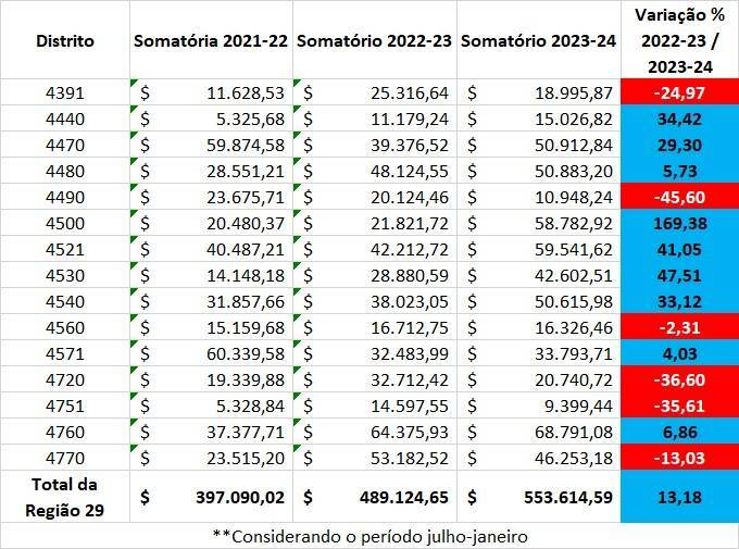 Novamente o Distrito 4480 é destaque nacional nas doações per captas.